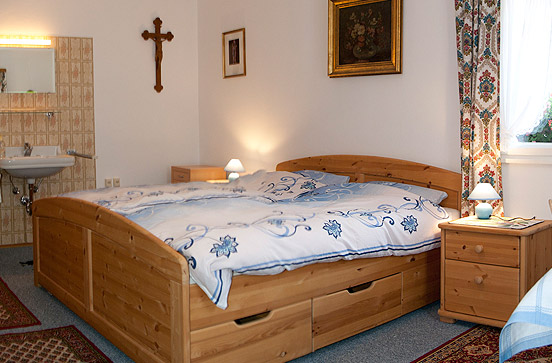 Unsere geräumigen Zimmer, vom Einzelzimmer bis zum Dreibettzimmer im ersten Stock sind individuell und freundlich eingerichtet. In jedem unserer Zimmer (2 Doppelzimmer, 1 Dreibettzimmer und 1 Einzelzimmer) stehen Ihnen Wasserkocher, Kaffeemaschine, WLAN und TV, sowie Waschbecken mit kaltem und warmen Wasser zur Verfügung.